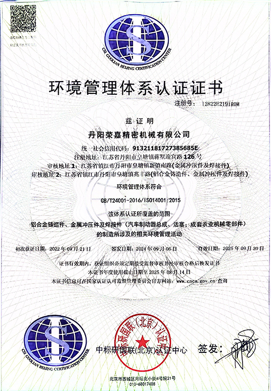 2024年環(huán)境管理體系認證證書-英文