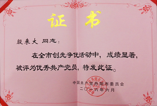 優(yōu)秀共產(chǎn)黨員證書